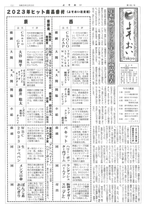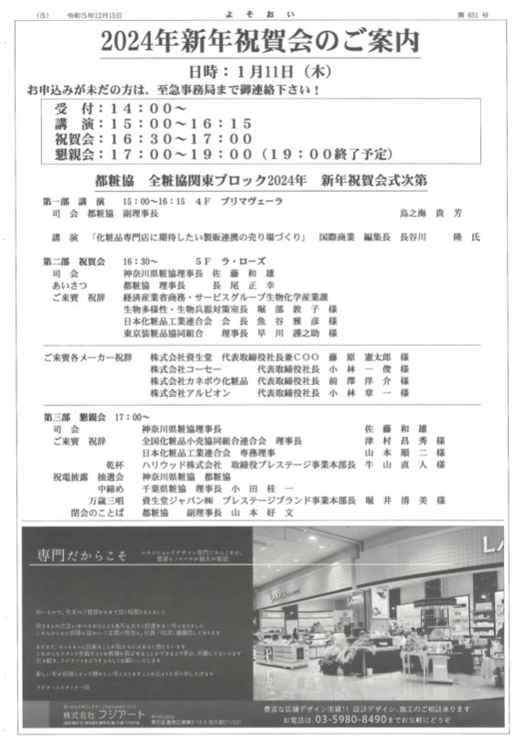 歳末恒例! 2023年ヒット商品番付表 変則な気候で季節感が掴めないままとうとう12月を迎えてしまいました。それでもやはり12月は12月、気忙しくお忙しい毎日、皆様いかがお過ごしでしょうか。今年も一年間、都粧協にご理解と […]